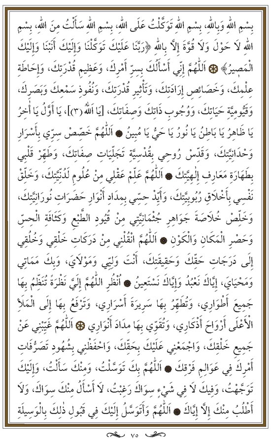 ilâ sulûki tariykihi. Ve ilhâmen alâ tahkiykihi. Ve kalben