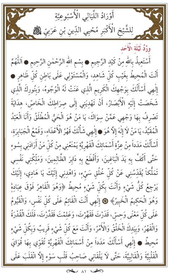 EVRADI USBUIYYE - Muhyiddini Arabi nin Günlük Virdleri